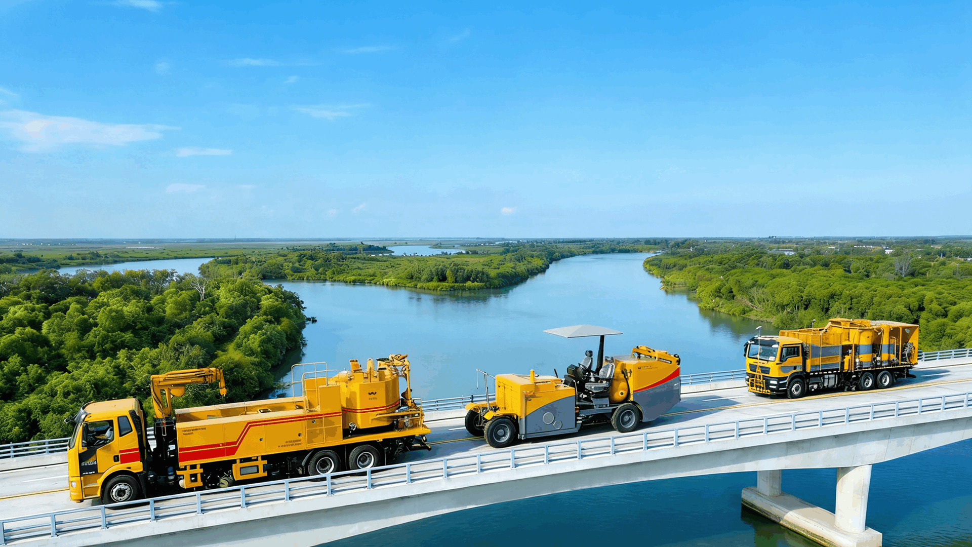 其产品涵盖全系列热熔、常温/双组份标线车,以及大、中、小、微、超微四种热熔、常温/双组份乘驾式划线机等划线装备,以及压水型标线清除/清洗车、铣刨型标线清除车及全系列标线涂料及其材料智慧化生产线等标线专用装备;涵盖防撞缓冲车、施工锥收放车、压水型机场除胶车等全系列标线配套装备。上述装备均采用模块化设计、机器人焊接、高品质配套、高耐腐(电泳、热镀锌等)表面处理等先进工艺,且同时提供免费升级、以旧换新、超长售后等增值服务。