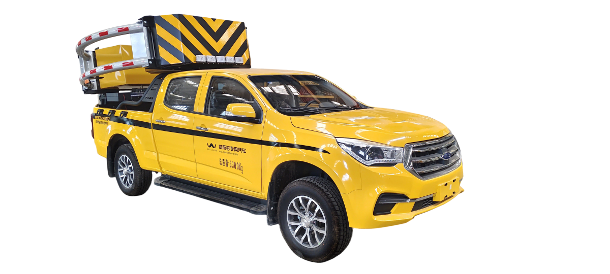 WRD5041TFZ 微型防撞缓冲车是一款采用单段式碰撞吸能装置、臂架式自动装载机构和高亮LED警示屏的轻量化施工防护车辆