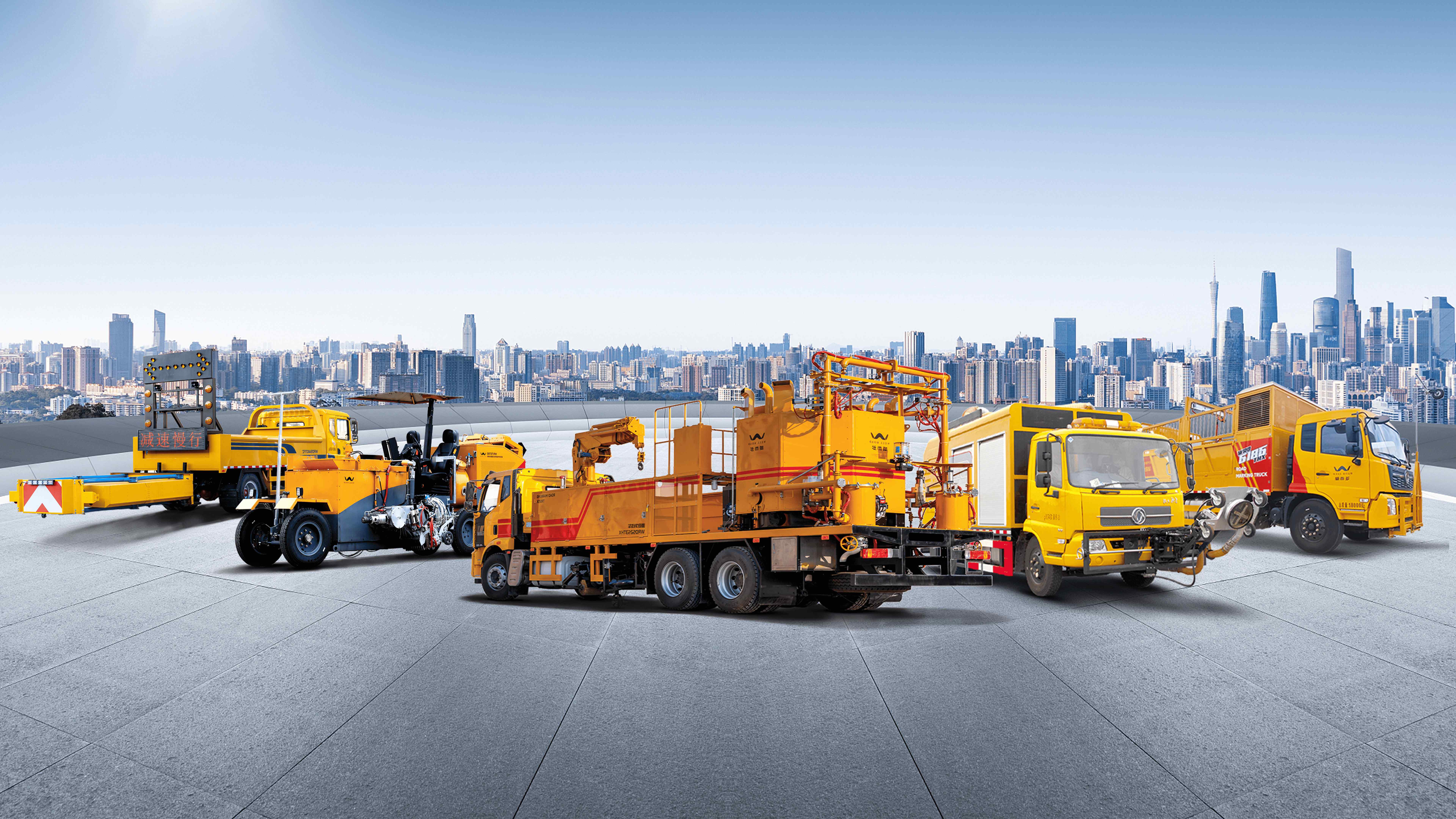 其产品涵盖全系列热熔、常温/双组份标线车,以及大、中、小、微、超微四种热熔、常温/双组份乘驾式划线机等划线装备,以及压水型标线清除/清洗车、铣刨型标线清除车及全系列标线涂料及其材料智慧化生产线等标线专用装备;涵盖防撞缓冲车、施工锥收放车、压水型机场除胶车等全系列标线配套装备。上述装备均采用模块化设计、机器人焊接、高品质配套、高耐腐(电泳、热镀锌等)表面处理等先进工艺,且同时提供免费升级、以旧换新、超长售后等增值服务。